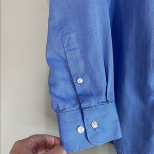 Men’s Oxford blue Kirkland Signature Herringbone weave Non Iron Button-Down Shirt.