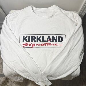 Kirkland Signature White crew neck sweater with Red and Black Logo