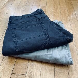 Kirkland Signature men's 5-pocket brushed cotton twill pant. Bundle of 2 colours - Deep Charcoal Grey, and Khaki Beige. These pants are perfect work work casual wear, or dressed up with a nice shirt for a date night!