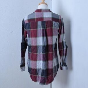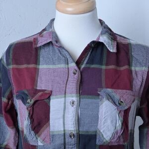 Kismet | Burgundy multicolored plaid half button down long sleeve