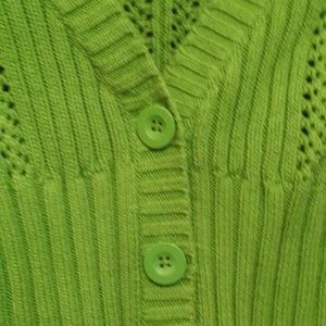 Large Kismet Green knit 3/4 sleeve button-front cardigan sweater.