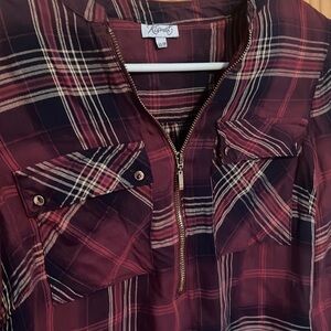 Essential plaid button-down in a soft and lightweight fabrication. Featuring chest pockets, zipper collar detail, and curved hem for a flattering fit, it’s a practical and stylish piece you can wear with your favourite jeans.