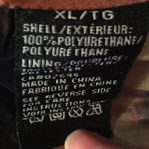 Shell is 100% polyurethane. Lining is 100% polyester.