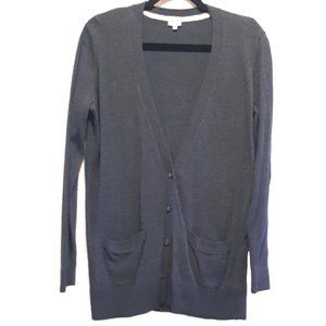 Soft and lightweight, "Kismet" cardigan. Size large. Charcoal grey. Excellent condition. Fabric: 38% cotton, 29% viscose, 28%nylon, 5% angora. Measures 22 inches armpit to armpit, 30 inches shoulder to hem line.