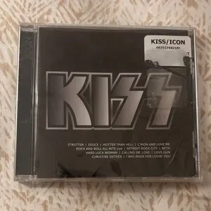 Kiss Icon CD featuring iconic tracks. Bold black and silver cover.