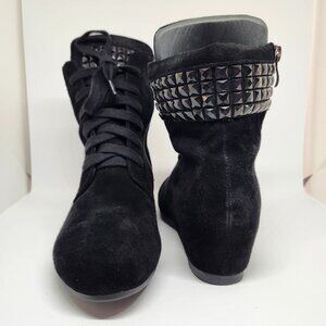 Kiss Kiss Women's Black Suede Wedge Booties W/Black Rhinestones Size 39