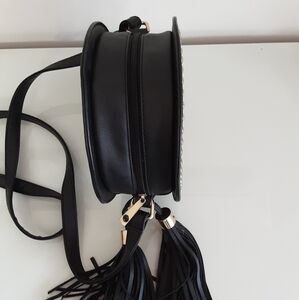 Beautiful embroidery and large tassel on this bag which measures 8” in diameter.