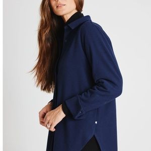 There Here and There Shirt is perfect for any occasion. Its relaxed fit allows for ultimate comfort while still maintaining a polished look. It features a curved hem that is longer in the back, a full button placket, and button-down cuffs. Made with insulating flannel fabric, this shirt is luxuriously soft, offers 2-way stretch, and provides insulation when the temperatures drop.