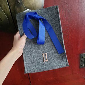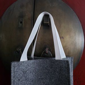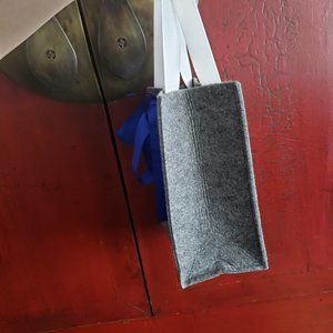 Kit and Ace small tote bag. Structured Grey felt bag that ties with blue ribbon.