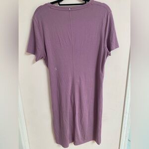 A beautifully simple slim-fit dress with a twist, featuring an asymmetrical front tie for a flattering drape and a raw cut hem for a weightless finish. Made from our lightweight and insulating Brushed French Terry for the feeling of smoothness both inside and out.
