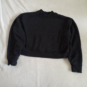 Kit and Ace Women's Size Small Pacific Coast Pullover Loungewear, Athletic, Athleisure, Cotton, Fall, Winter, Comfy, Casual Color is dark heather gray High neck and long sleeves Cropped length Two side front side zipper pockets Thick sweatshirt material -heavy weight Blue and white stripe detail at cuffs of sleeves Main: 100% Cotton Machine wash cold, tumble dry low Good used condition with some slight signs of wear -the detail at cuffs has a little bit of pulling on threads Please see photos for reference to condition and measurements