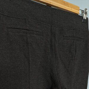 These Kit & Ace pants are the perfect combo of comfort and style. Feature an elastic waist, 4 way stretch and cuffed ankle length legs. In a dark heather grey, these pants are in very good used condition. Front waistband hidden pocket with back slit faux pockets.