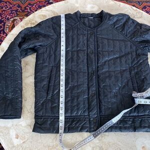 In excellent preowned condition Kit and Ace bomber jacket. This reversible Bomber Jacket- is matte on one side and shiny on the other- for two looks in one. Inspired crisp spring and fall commutes, this jacket is made with lightweight, polyester Kit Therm fill. Wear both ways over your favourite ensembles.
