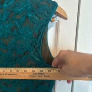 Fully lined emerald green pencil dress Stretch less has good hold Size tag removed. Fits like a xs and good to 4. See measurements may fit up to 6 fitted. Excellent condtion Back zip entry Midi length