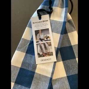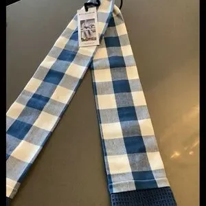 A kitchen boa (or kitchen towel scarf) is a wearable tea towel designed to drape around the neck, featuring towels at both ends for hands-free convenience while cooking or cleaning.