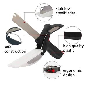 This Clever Cutter is a Multifunction stainless steel kitchen shears for vegetables and fruits. Features a smart cutter design.