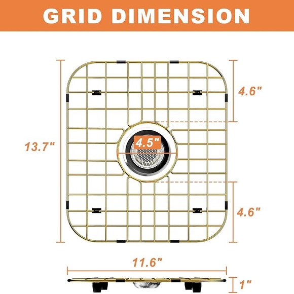 Kitchen Sink Bottom Two Grids, Racks, Protector Matte Gold