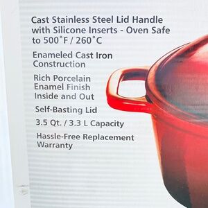 KitchenAid 3.5 QT Red Enameled Cast Iron Dutch Oven Pot Casserole w Original Box