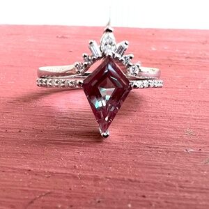 Kite Shape Alexandrite Rings Handcrafted in Sterling Silver 925 with Moissanite