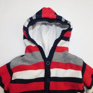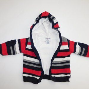 Kitestrings Baby 0-3 Months Striped Knit Hooded lined Cardigan Sweater Red White