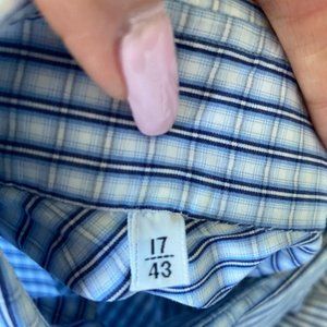 Kiton Men's Dress Shirt Blue Plaid Pattern in Size 17/43 EUC