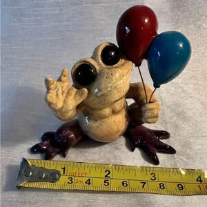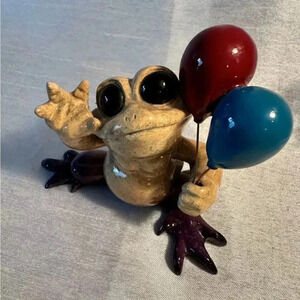 Kitty's Critters 2007 Frog Figurine PARTY TIME Ceramic Frog Balloons RARE 3” EUC