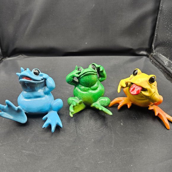 Kittys Critters See Hear Speak No Evil Frogs Blue Green Orange 2001 Set of 3