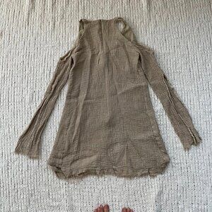 Kitz by Kit Willow Distressed Open Shoulder Tan Mini Dress - Size Small