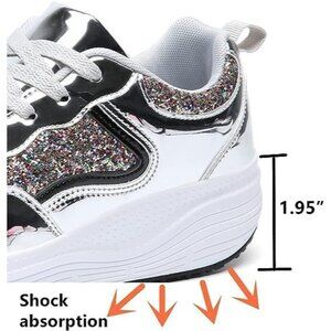 Kkdom Women's Silver Breathable Mesh Comfort Lightweight Wedge Platform Sneakers