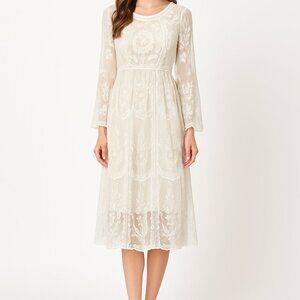 Klasiks Maxi Dress White Lace Embroidered Sleeveless Boho Bridal Occasion OS