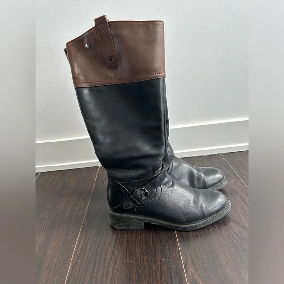 Knee high riding boots two toned from Denver Hayes. Size 6. Lots of life left and great traction on the sole!