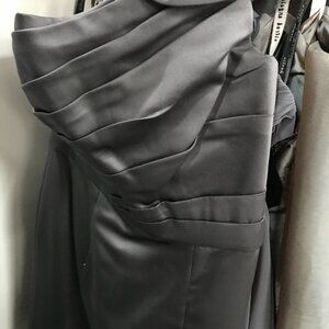 Knee-Length Satin Bridesmaids Dress, Charcoal Grey gray 1 Shoulder with ruffle
