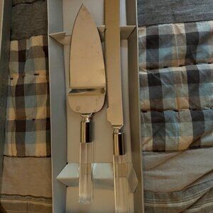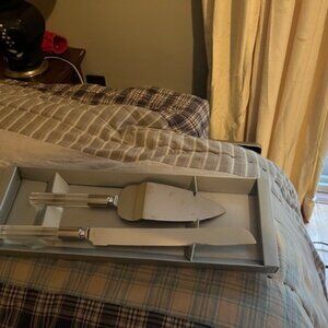 New in original box, never used Stainless Steel Cake lifter also has serrated edge Faux crystal handles on both