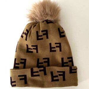 Tag: winter, cozy, warm, knit, beanie, pom, faux, fur, soft, lined, stylish, neutral, tan, brown, double, f, pattern, unisex, chic, casual, fashion, accessory, inspired, designer, logo, stretch, comfortable, trendy, plush, cold, weather, classic, timeless, holiday, gift, gifting, Christmas, festive, winterwear, hat, present, Tuque
