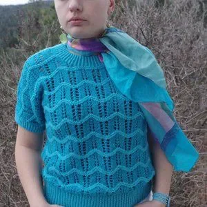 Beautiful hand made blue knit sweater, short sleeve sweater .The size medium ,great blue sweater for Spring .In very good condition.