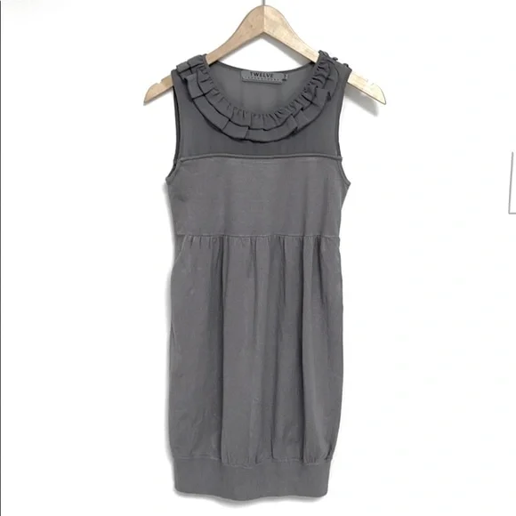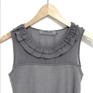 Cute TWELVE dress with sheer top, ruffle design and knit bottom. Knit section is stretchy.