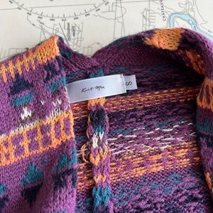 Funky boho knit cardigan with tassels made by Knit Mix. 3/4 sleeve. Tagged as a size small, measures 27" pit to pit, 26" collar to cuff, 21" long without tassels, 28" long with.