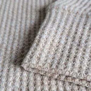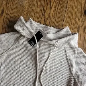 This incredibly comfy waffle-knit pullover sweater features a high neck plus a soft hood. This is a perfect sweater for lounging at home or for a relaxing stroll in town. It was originally purchased at Pentagone and it is brand new; never been worn. The next cozy addition to your closet!