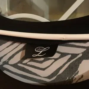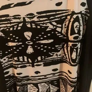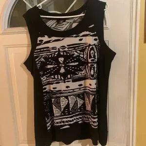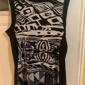 Lovely comfort of sleeveless tunic with sleeveless design. Nice hip length stretch knit no wrinkle fabric, black white contrasting detail a very nice piece.