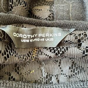 Knit black top with lace insert at back. The back has a gold zipper. Material is light weight. Ideal for versatile styling. Like new and never put in the dryer.