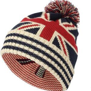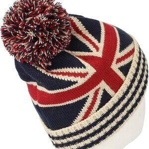 Knitted Union Jack Pom Pom Beanie Hat One Size NEW
