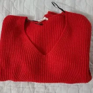 Used only once, knit material is very warm and cozy plus it has a puffed style sleeve so it makes it extra cute even with just a pair of jeans- but style it as you want! 🤍