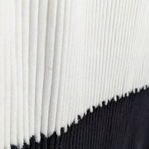 This white and black, mid-rise knit midi skirt is colour blocked. It has accordion pleats, elasticated belt it's immensely soft