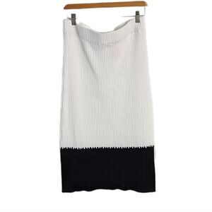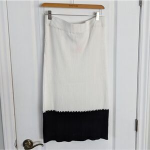 Knit pleated midi Skirt color block black and white Large NWOT