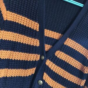 Forever 21 knitted cardigan button up with functional pockets. Very warm & in excellent condition. Dark navy blue & orange