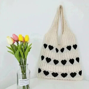 Knitted tote bag. No brand. For daily use available in white, khaki, green and blue.