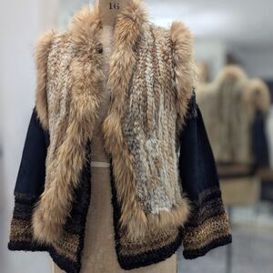 Very soft lightweight knitted fur vest. In lovely warm neutral color way of blond taupe & light grey.