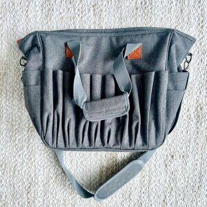 Complete knitting starter kit! Includes 18 pairs of straight metal knitting needles (2.0 mm–8.0 mm), a soft zip-close project yarn pouch with tribal print, a grey organizer bag with shoulder strap, and The Knitter's Book of Knowledge by Debbie Bliss (unused).