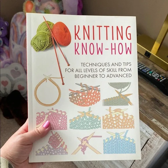 Knitting Know-How book with techniques and tips for all skill levels. Features colorful illustrations.