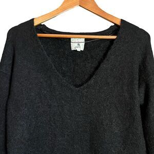 Keywords: Jackpot sweater, wool mohair sweater, black V-neck knit, cozy mohair blend top, warm winter sweater, classic black knitwear, soft wool blend sweater, minimalist cold-weather staple, timeless knit pullover